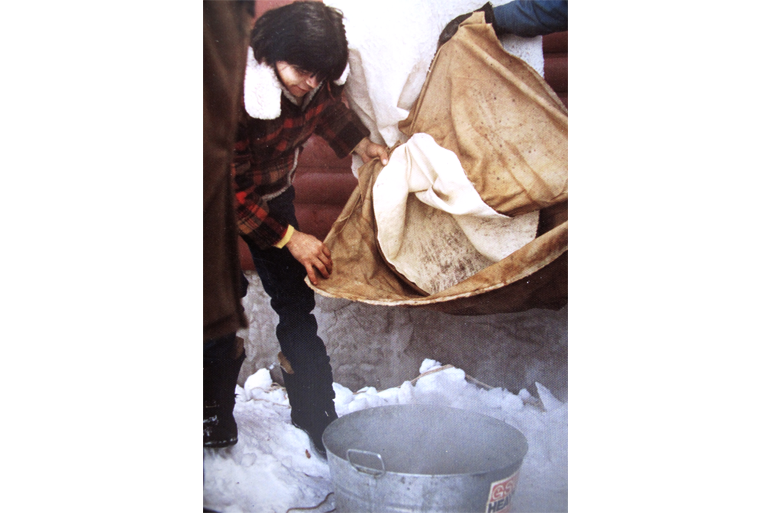 On procède au boucanage en faisant un petit feu avec du bois pourri et sec dans un seau de métal. On utilise le sapin, l’épinette noire ou le tremble.